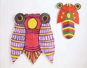 This image of Cicada-style kites came from a site in Japan, and I recorded the cicada audio file coupled to it August '95. Somewhere towards the middle of the recording, I think that you can hear one of my cats. The au file is pretty big and weighs in at almost 220K.
